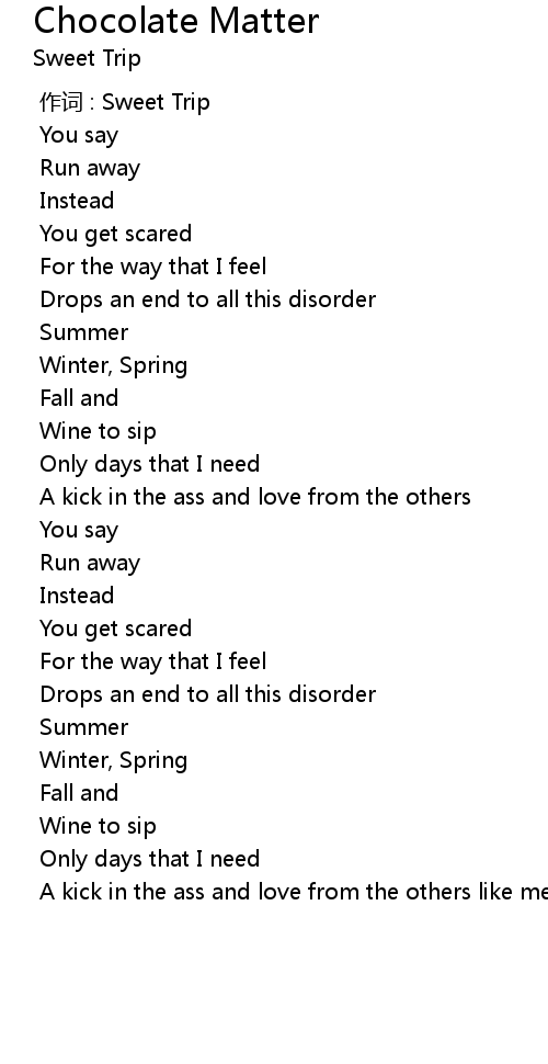 | [00:00.000] | zuo ci : Sweet Trip |