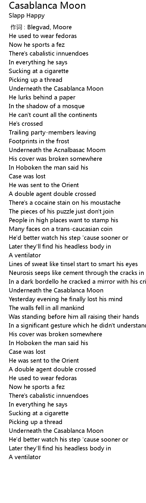 | [00:00.00] | 作词 : Blegvad, Moore |
