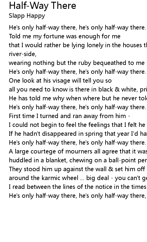 He's only half-way there, he's only half-way there, half-way there, etc. |