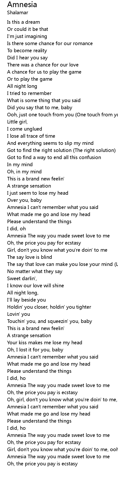 Amnesia The way you made sweet love to me