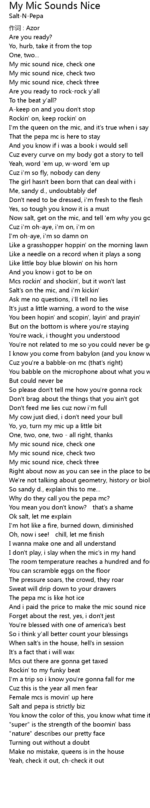| Salt's on the mic, and i'm kickin' | |