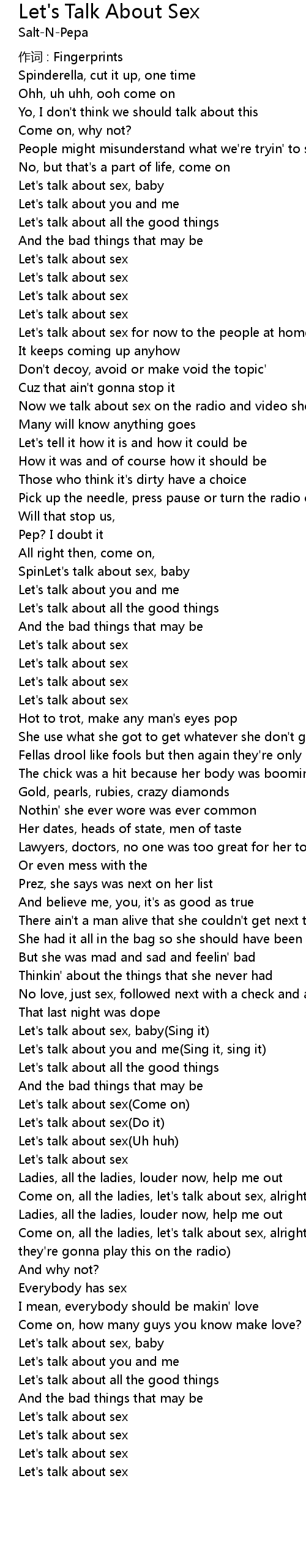 | Come on, all the ladies, let's talk about sex, alright(Yo, Pep, I don't think they're gonna play this on the radio) | |