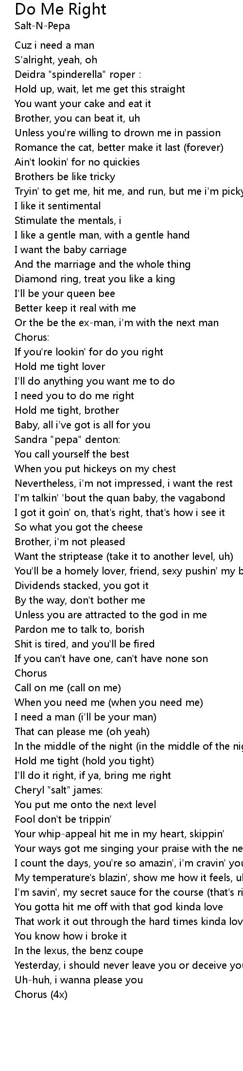 | I need you to do me right | |
