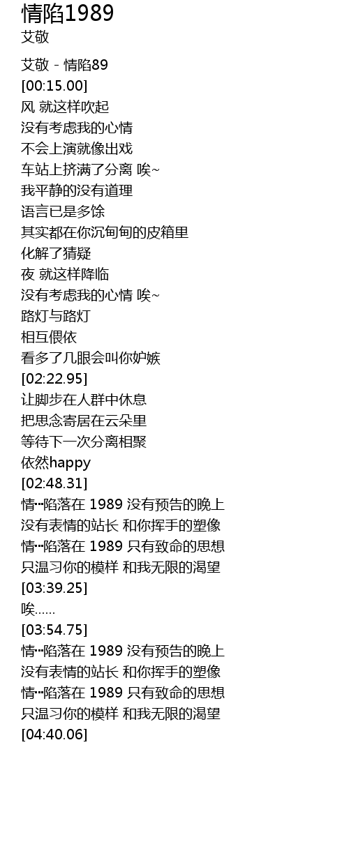 | [04:20.71] | 情┅陷落在 1989 只有致命的思想 |