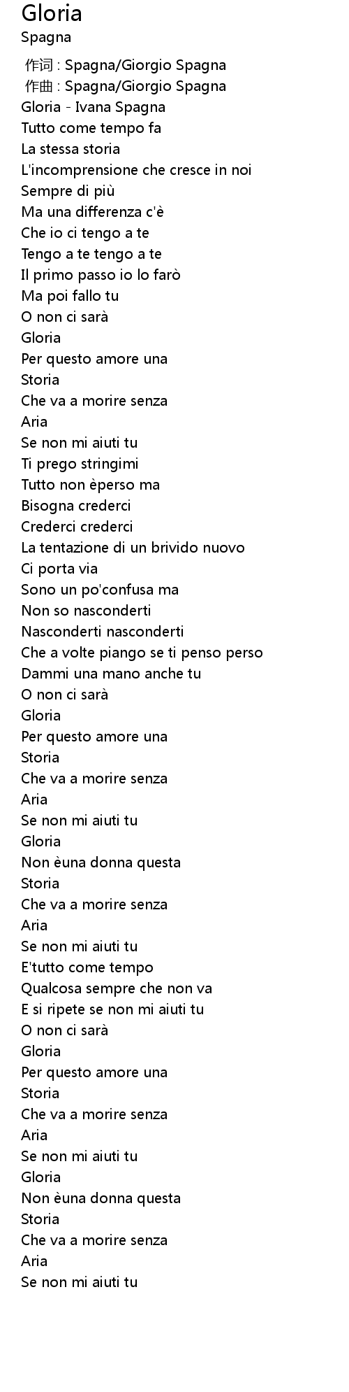 | [00:00.100] | Gloria - Ivana Spagna |