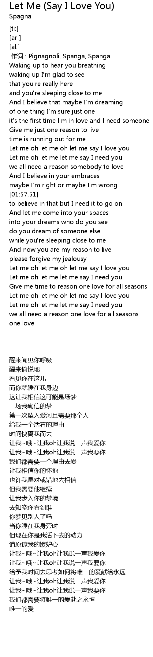 | [02:57.24] | Let me oh let me oh let me say I love you |