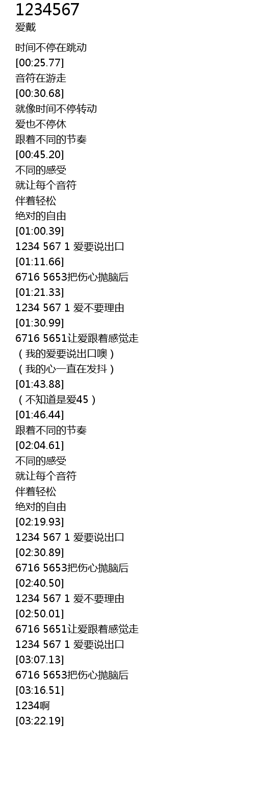 | [01:22.29] | 1234 567 1 爱不要理由 |