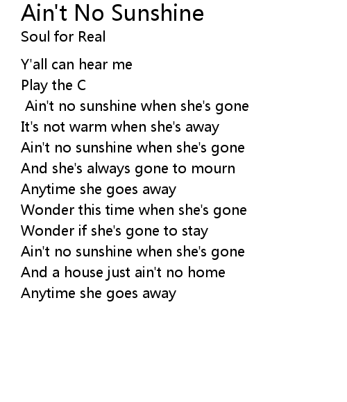 | Ain't no sunshine when she's gone | |