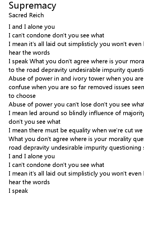 I speak What you don't agree where is your morality questioning authority leads to the road depravity undesirable impurity questioning supremacy |