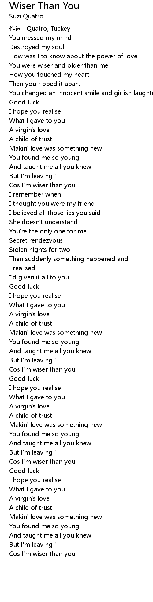 | 作词 : Quatro, Tuckey | |