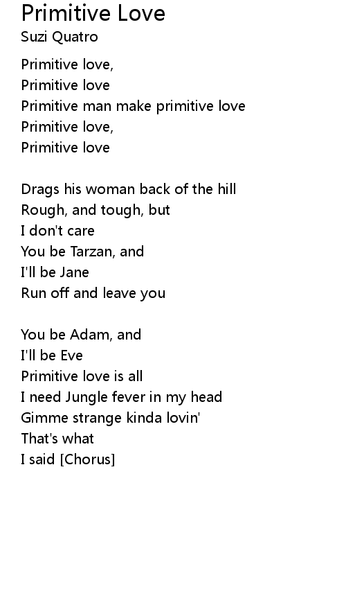 | Great heavens above, it's primitive love [Chorus] | |