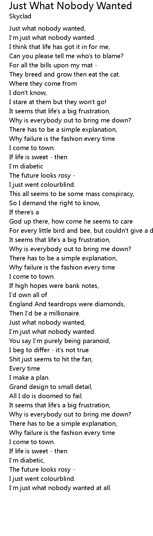 I'm just what nobody wanted at all. |
