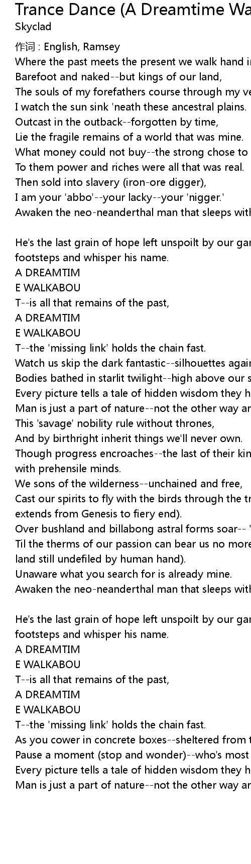 | Song | Trance Dance (A Dreamtime Walkabout) |