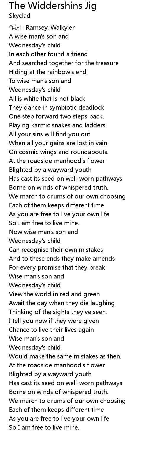 | Song | The Widdershins Jig |