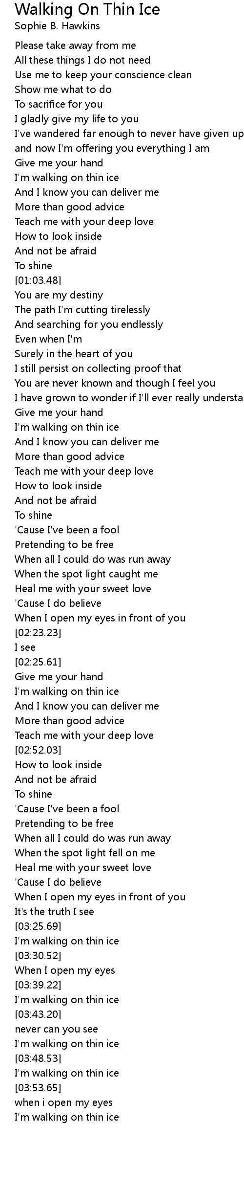 I'm walking on thin ice |