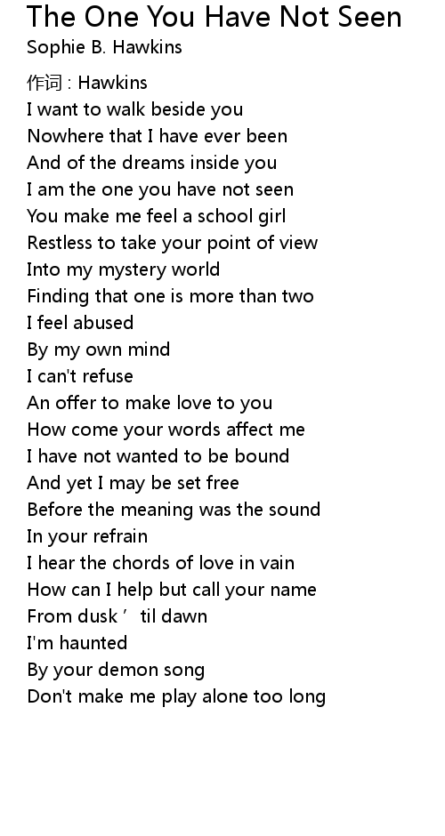 | Song | The One You Have Not Seen |