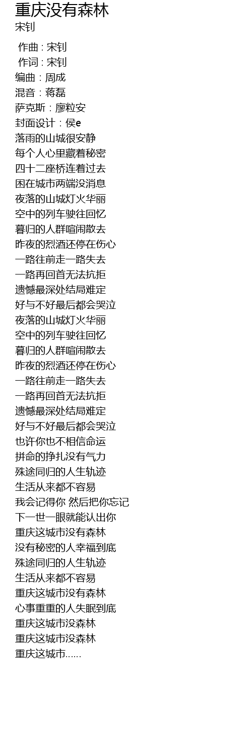 | [04:22.238] | chong qing zhe cheng shi mei sen lin |