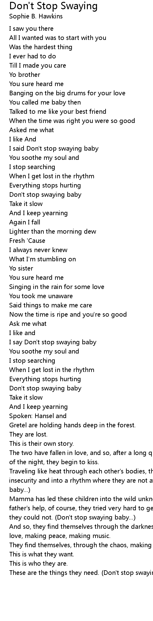 I said Don't stop swaying baby |