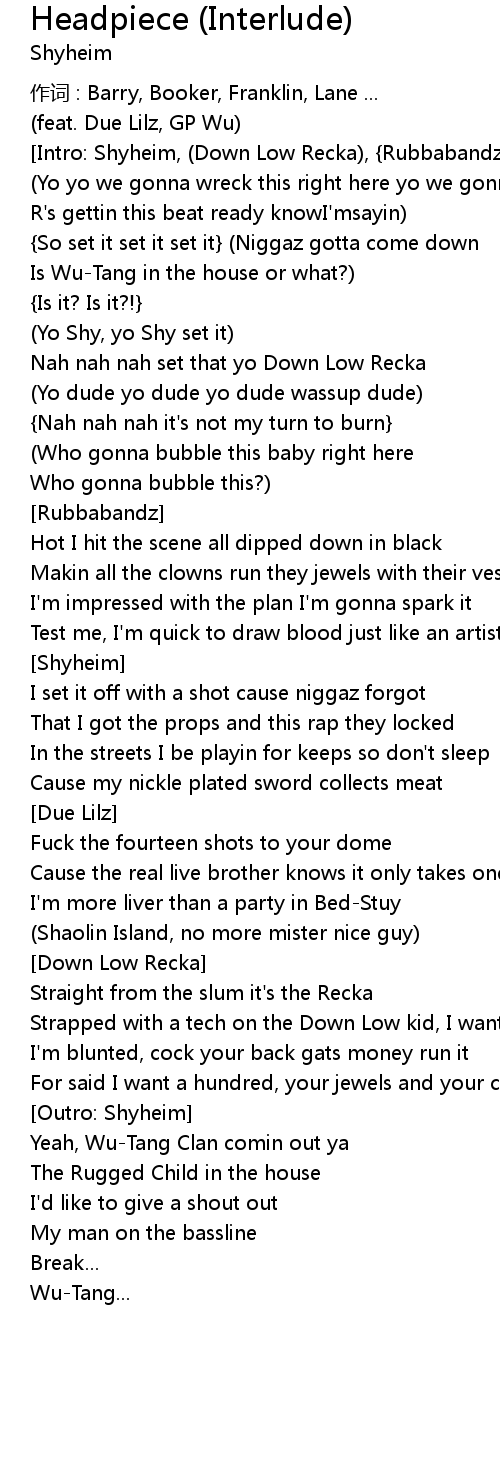 | [Intro: Shyheim, (Down Low Recka), {Rubbabandz}] | |