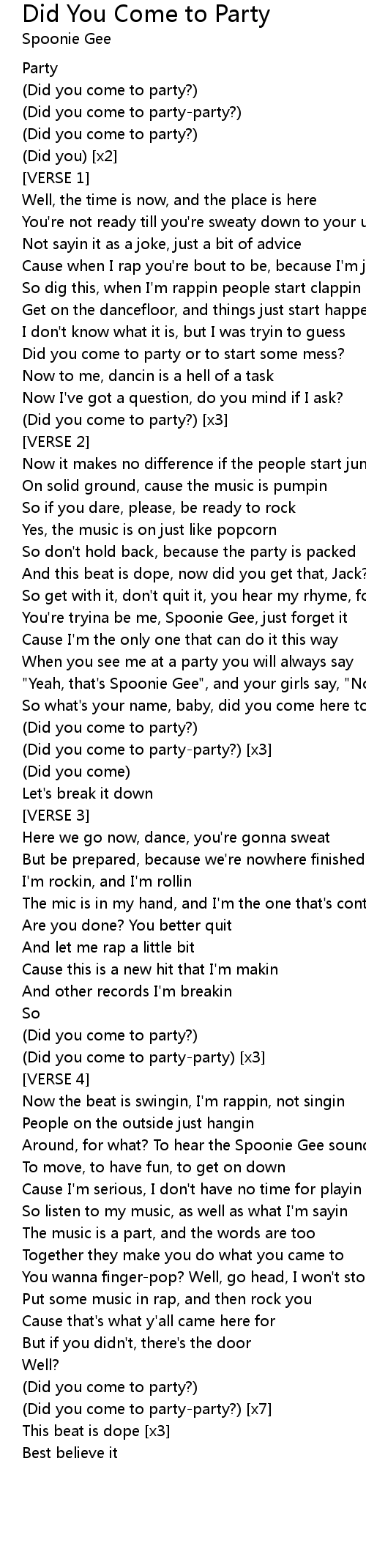"Yeah, that's Spoonie Gee", and your girls say, "Not hardly" |