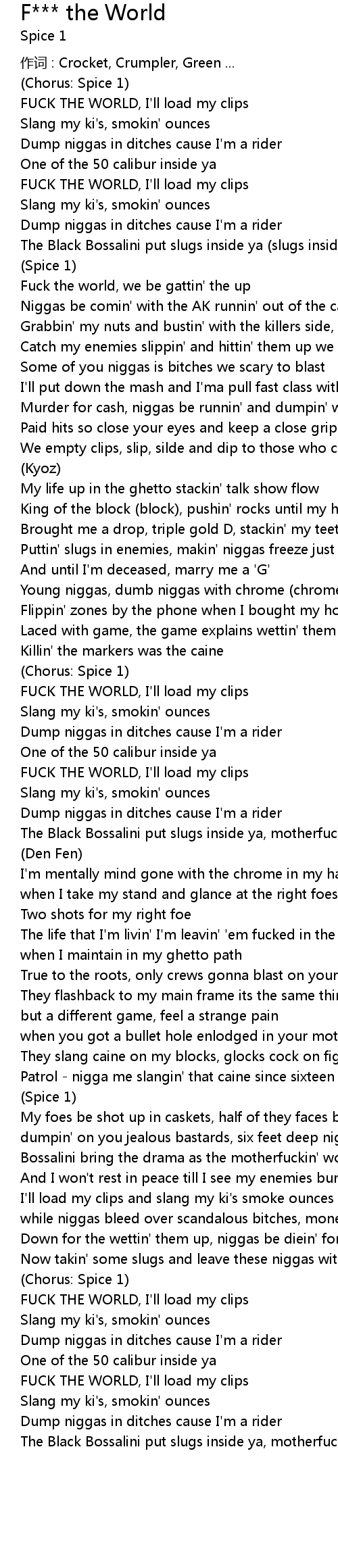 | FUCK THE WORLD, I' ll load my clips | |