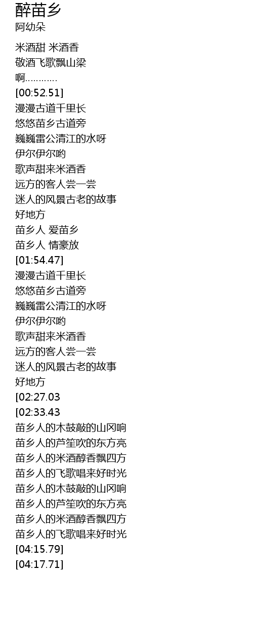 | [02:40.02][02:27.03] | 苗乡人 爱苗乡 |