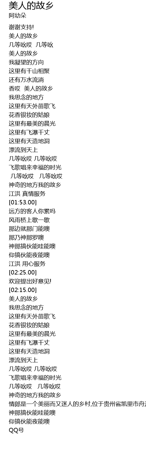 | [00:41.11] | 香哎 美人的故乡 |
