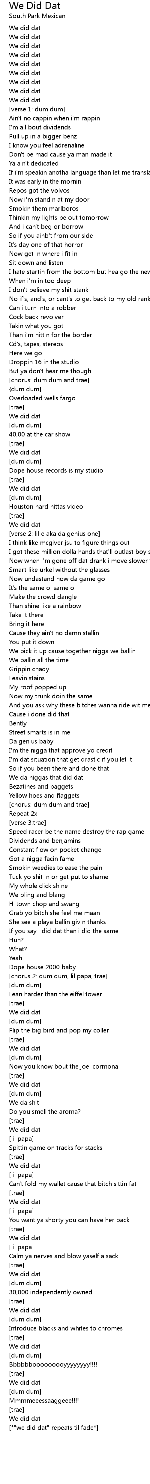 [*"we did dat" repeats til fade*] |