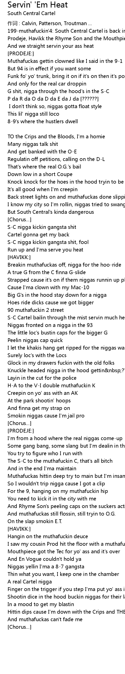 | S-C nigga kickin gangsta shit | |