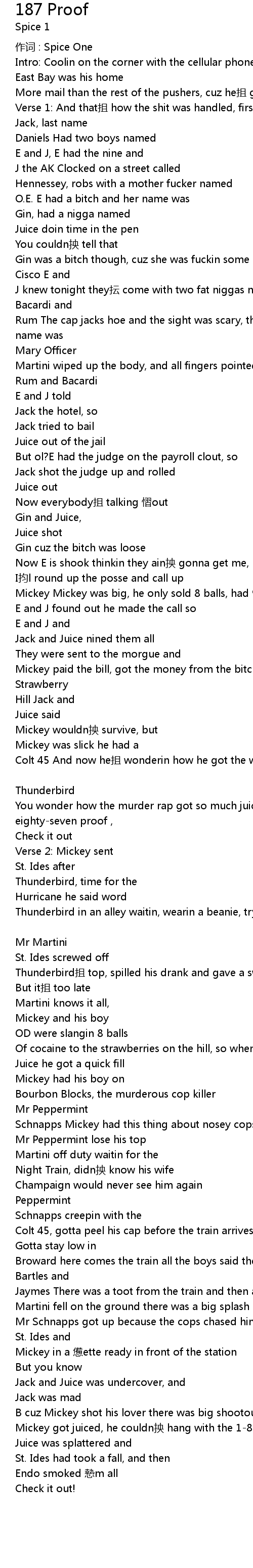| You wonder how the murder rap got so much juice, it was a hundred and eightyseven proof , | |