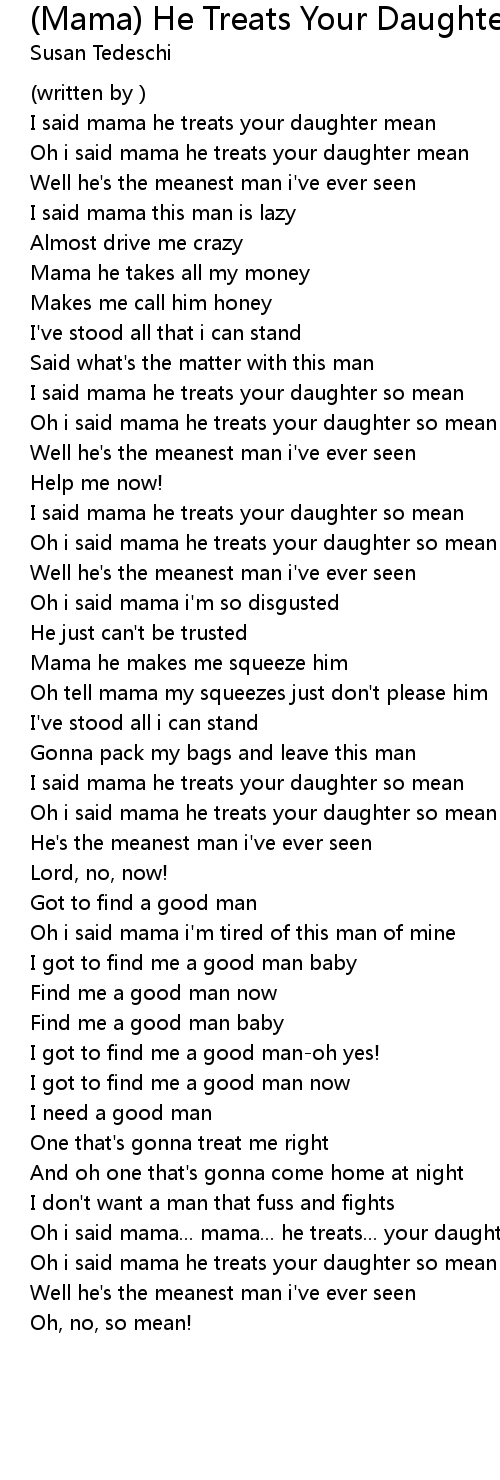Oh i said mama... mama... he treats... your daughter... mean... |