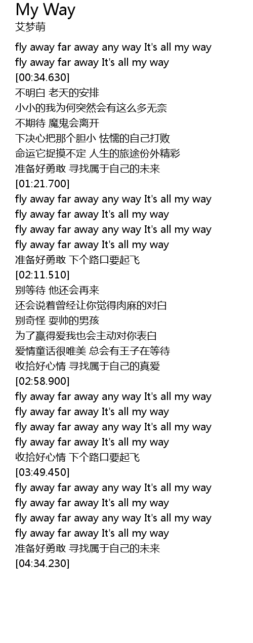 | [02:59.970] | fly away far away any way It' s all my way |