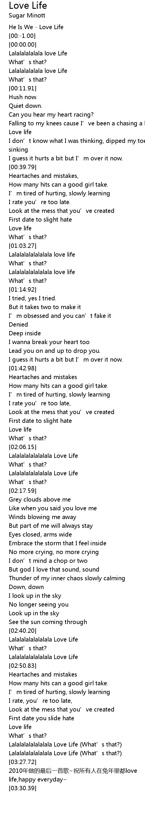 | [02:11.97] | Lalalalalalalalala Love Life |