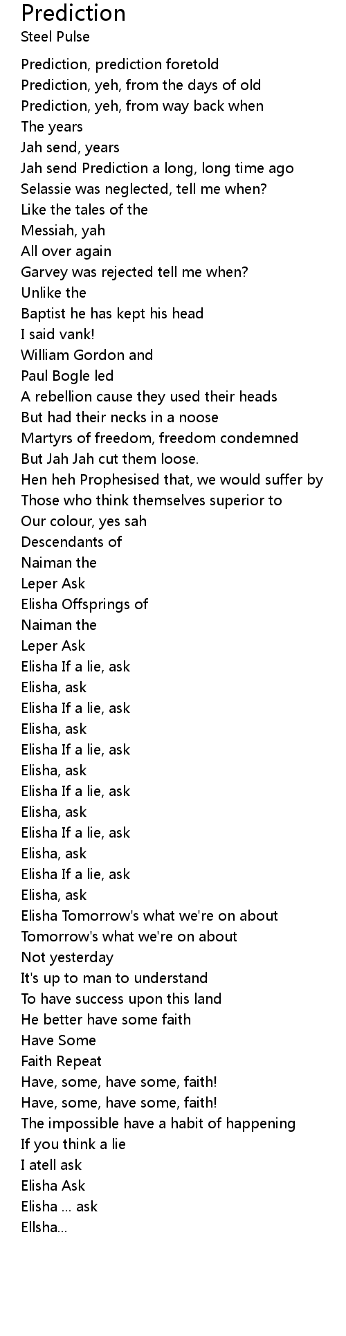 Jah send Prediction a long, long time ago |