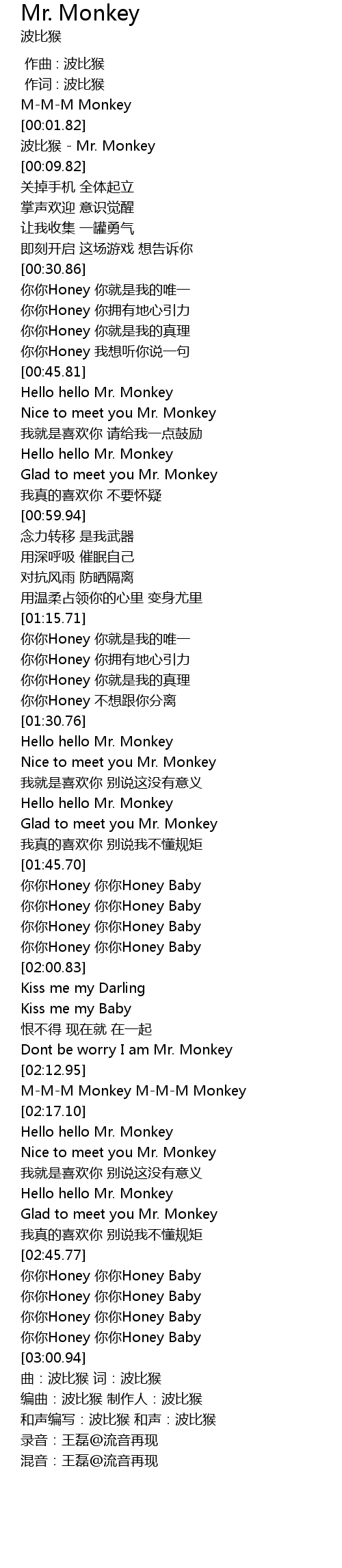 | [00:07.82] | bo bi hou Mr. Monkey |