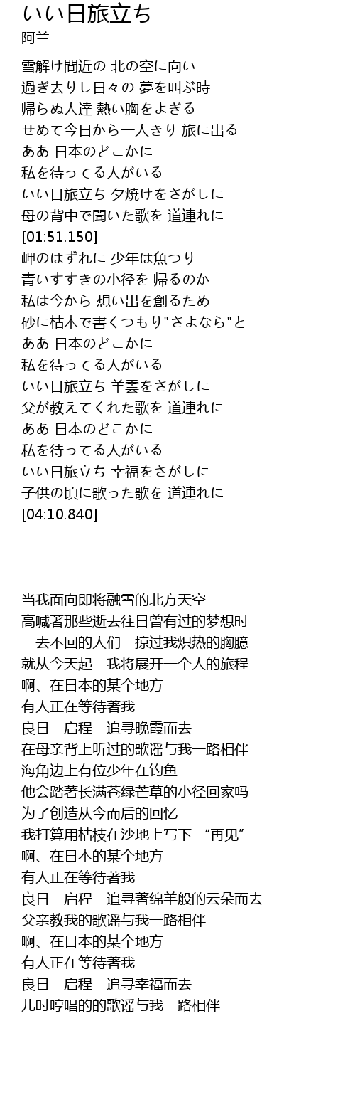 | [03:49.150] | いい日旅立ち 幸福をさがしに |
