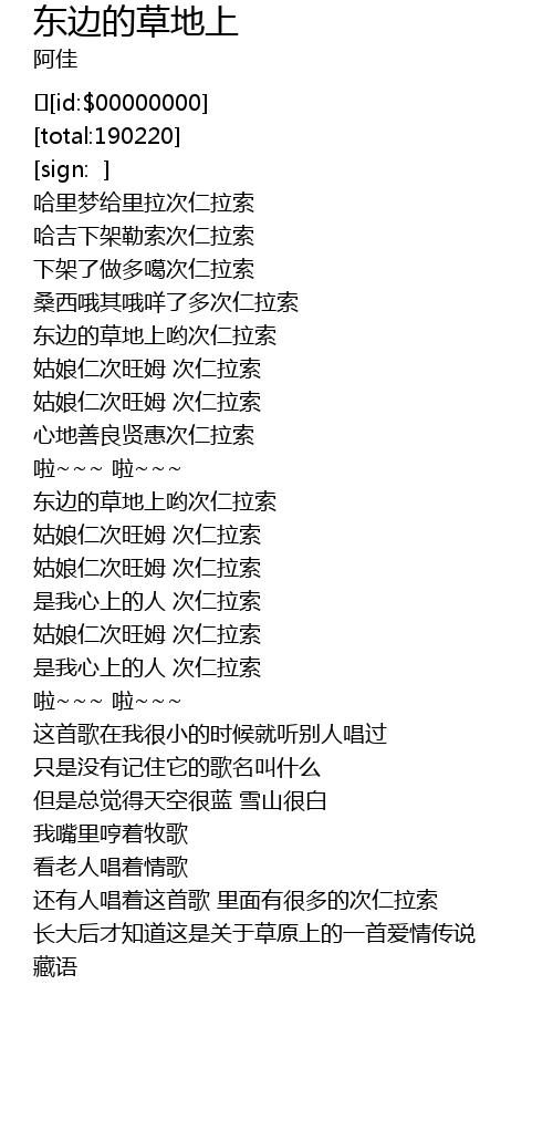 | [00:46.238] | 东边的草地上哟次仁拉索 |