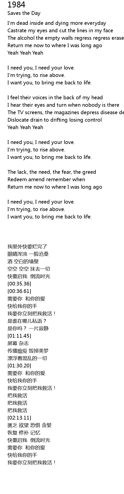 I need you, I need your love. |