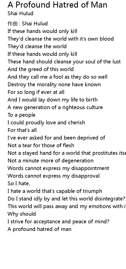 | Song | A Profound Hatred of Man |