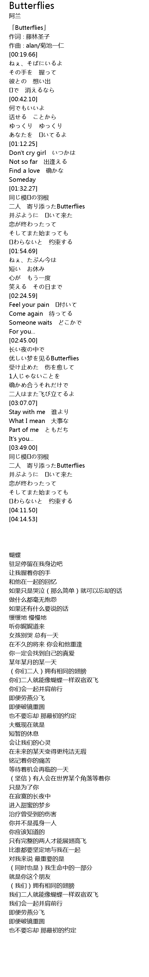 | [00:01.66] | 「Butterflies」 |