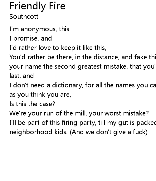 I'll be part of this firing party, till my gut is packed of bullets, shot by the neighborhood kids. (And we don't give a fuck) |