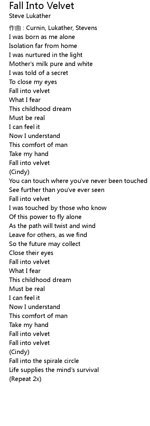 | Song | Fall Into Velvet |