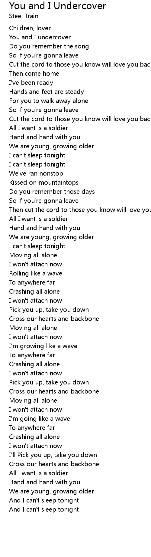 You and I Undercover Lyrics