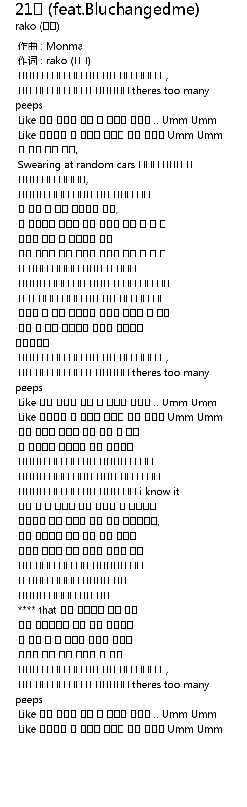 21살 (feat.Bluchangedme) 21  feat. Bluchangedme Lyrics
