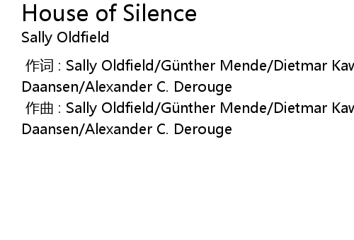 | [00:00.000] | 作曲 : Sally Oldfield/Günther Mende/Dietmar Kawohl/Johan Daansen/Alexander C. Derouge |