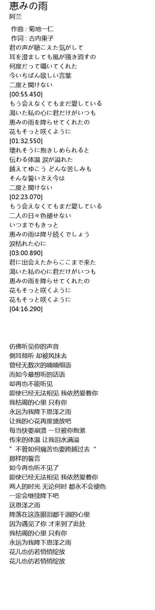 恵みの雨 hui yu Lyrics