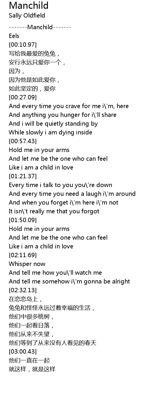 | [02:41.39] | 兔兔和怪怪永远过着幸福的生活, |