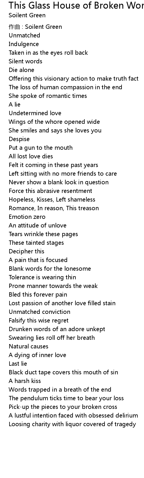 | Song | This Glass House of Broken Words |