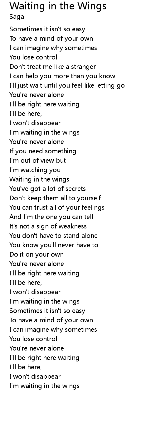 I'm waiting in the wings |