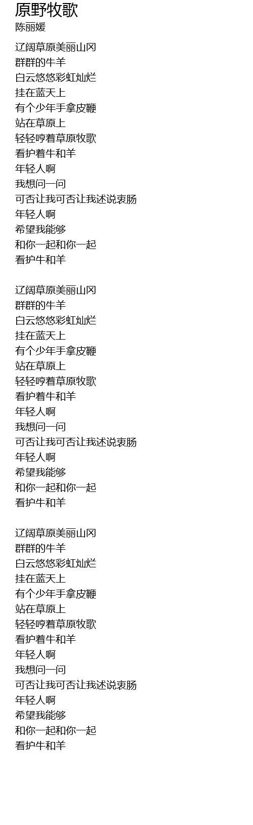 | qīng qīng hēng zhe cǎo yuán mù gē | |